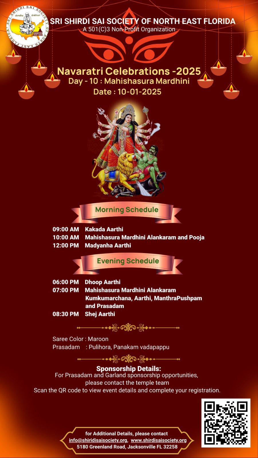 Navaratri – Day 10 – Mahishasura Mardhini + Add to Google Calendar Date Oct 01 2025 Expired! Time All Day Local Time Timezone: America/New_York Date: Oct 01 2025 Time: All Day Share this event